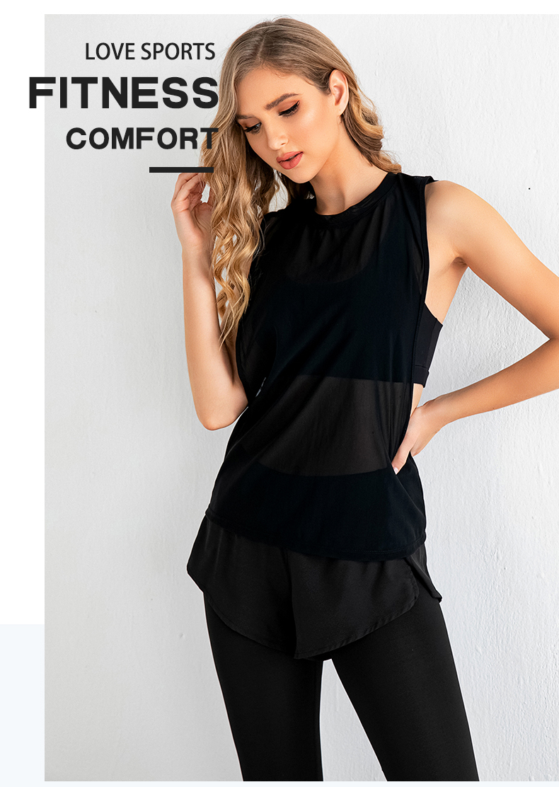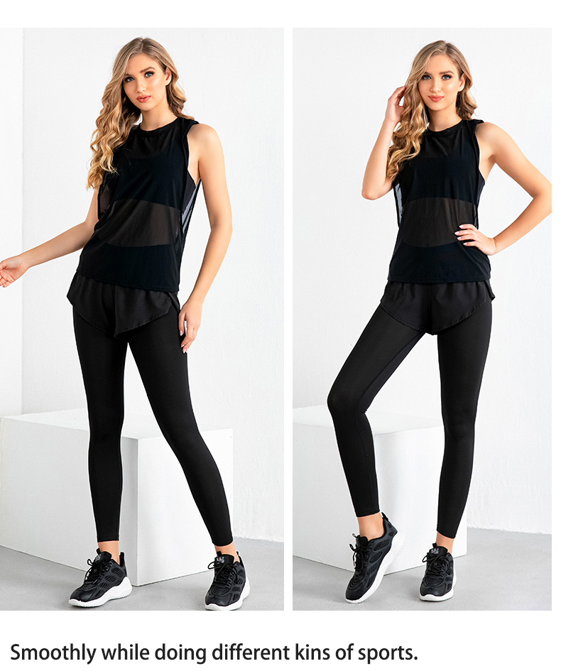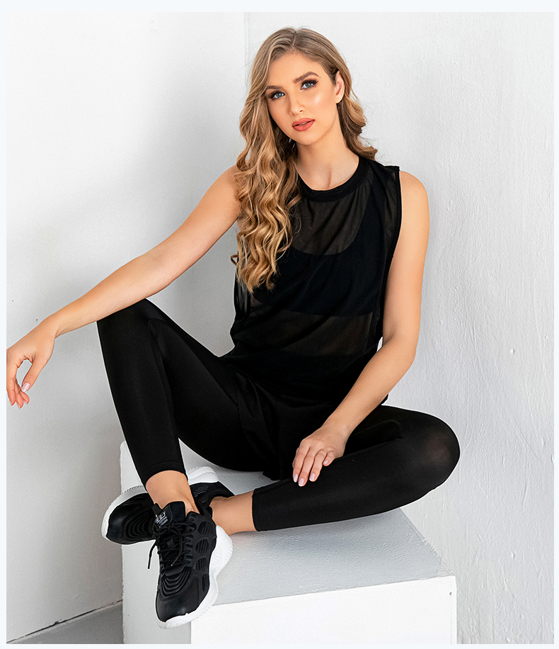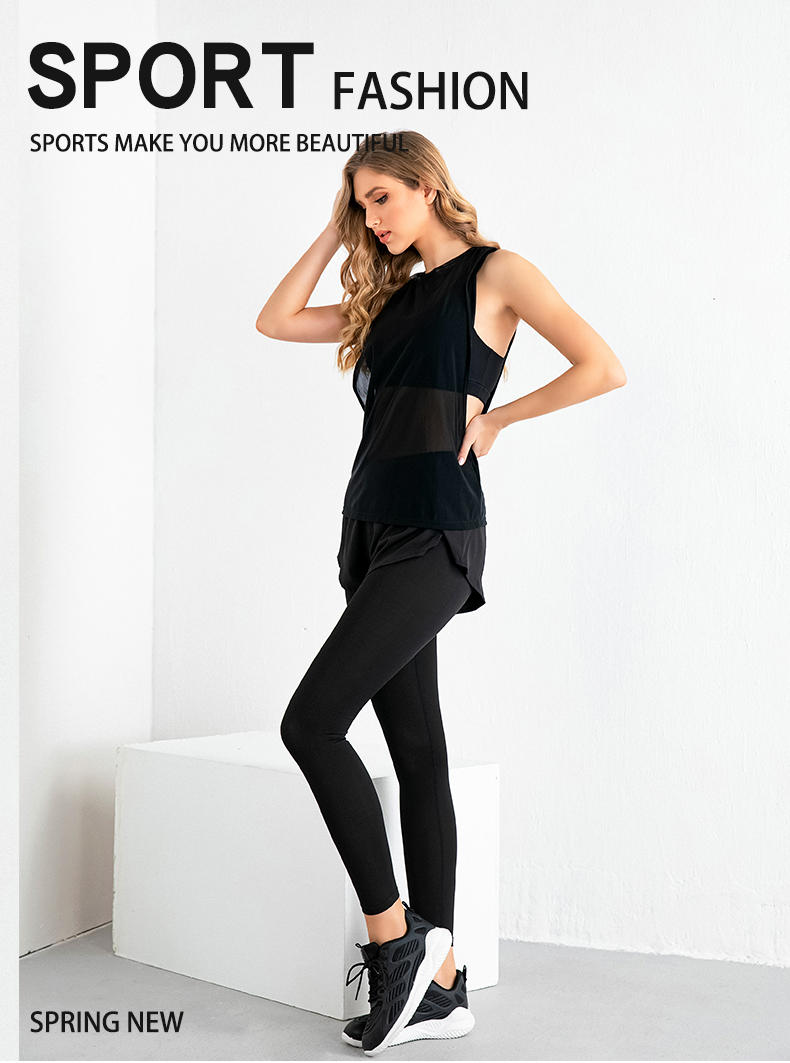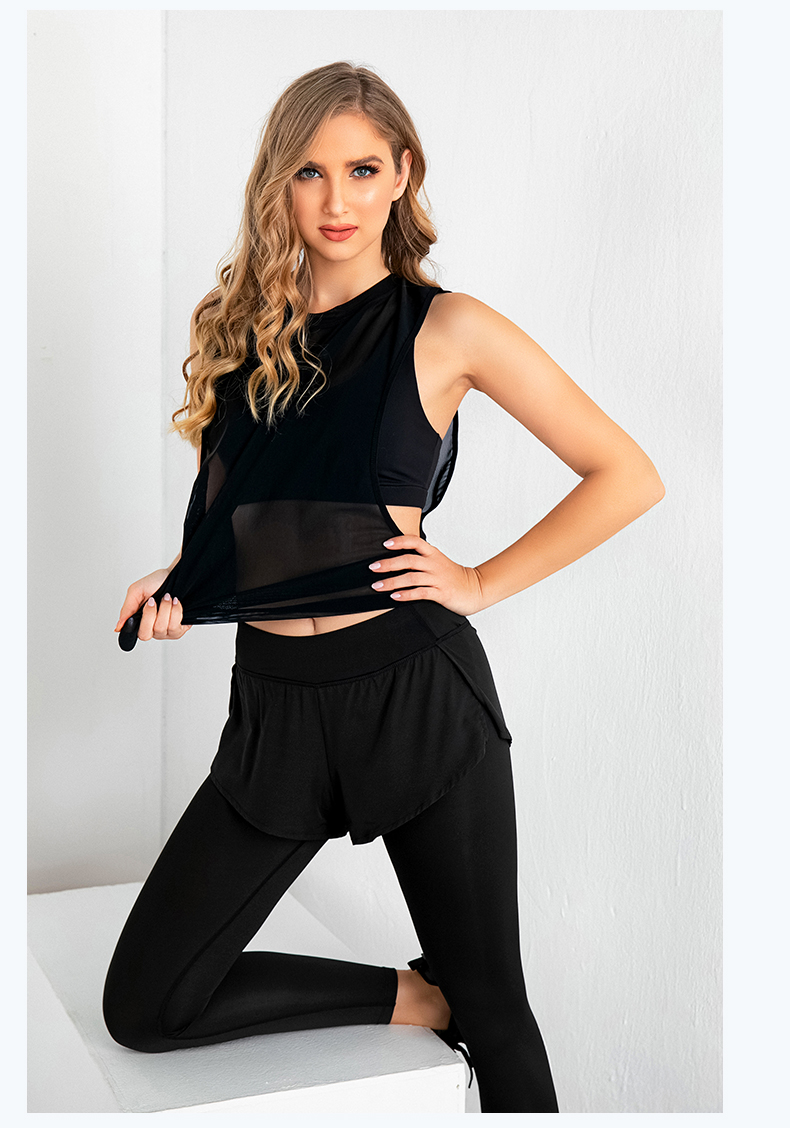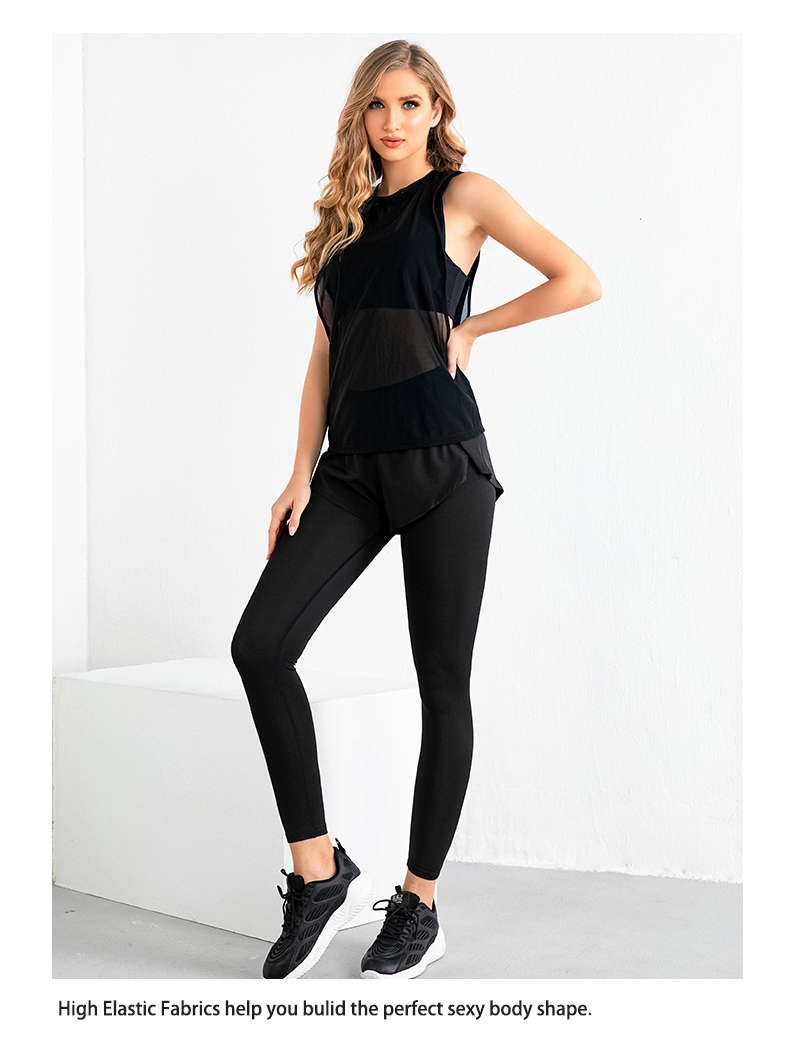 2021 Legging Workout Aktif Nganggo Olah rogo ngencengke otot Wanita Mesh 3 Piece Set Yoga Kanthi Top Tank